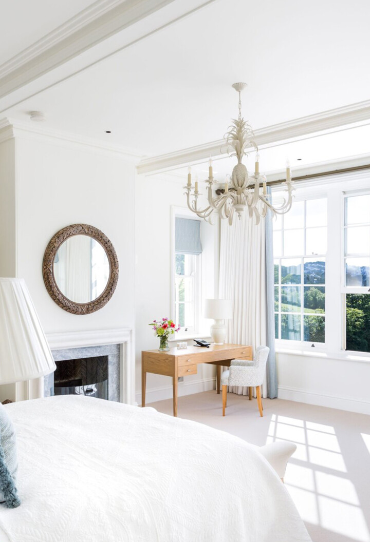 Bay Leaf Circular Mirror - Small in Antique. Shown with Pineapple Chandelier - 8-Arm. Interior designed by Zanna Westgate Design.