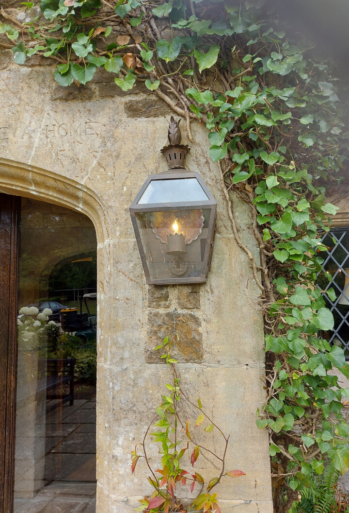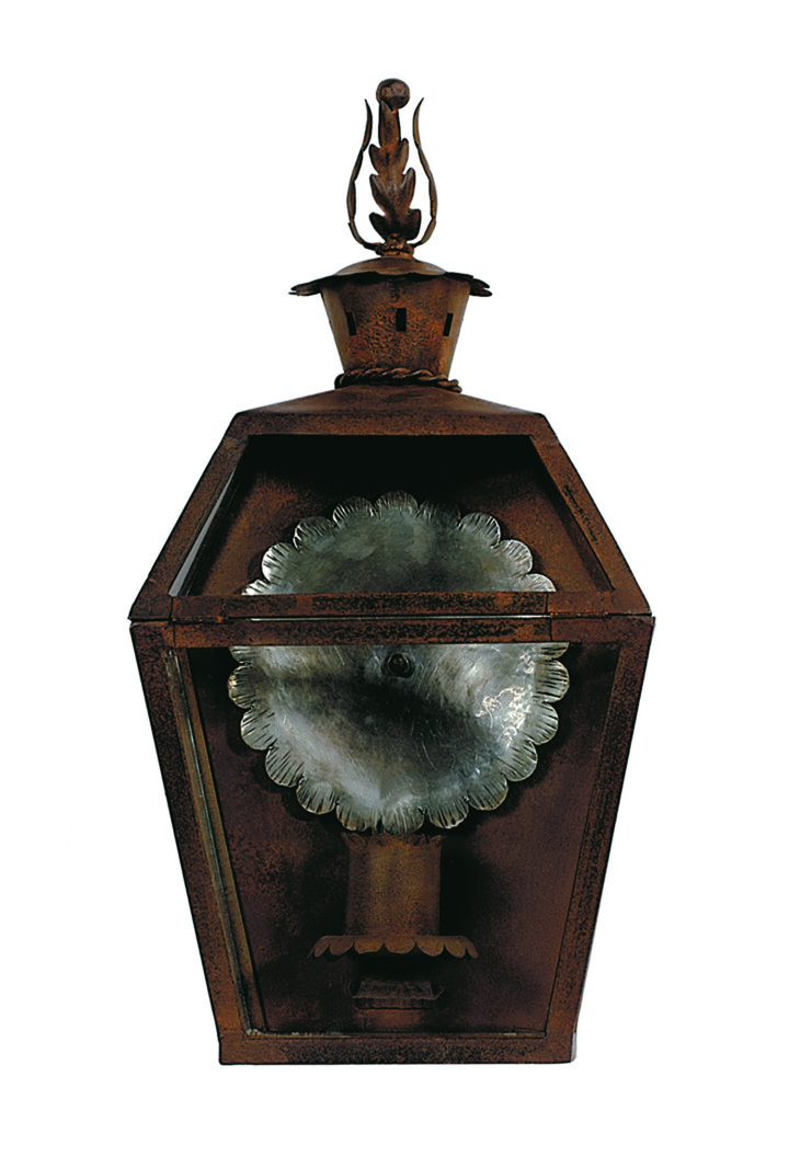 Mougins Wall Lantern in powder coated Waxed Rust finish. Credit: Canham Design Company
