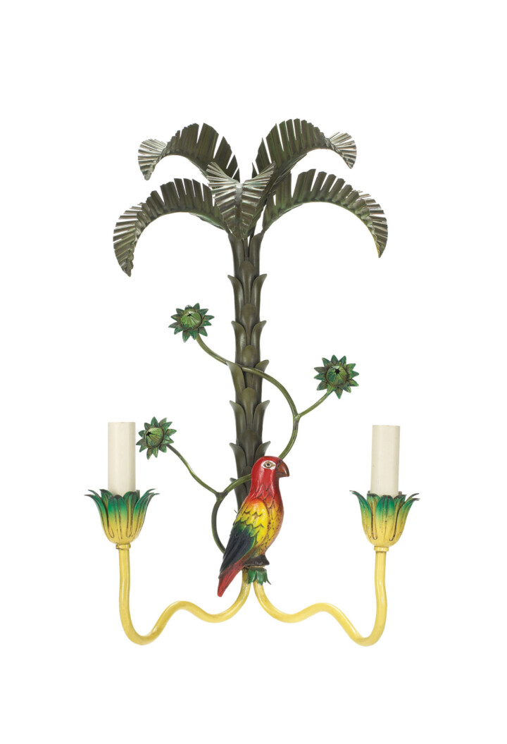 Palm Tree & Parrot Wall Light in hand-painted finish (Left)