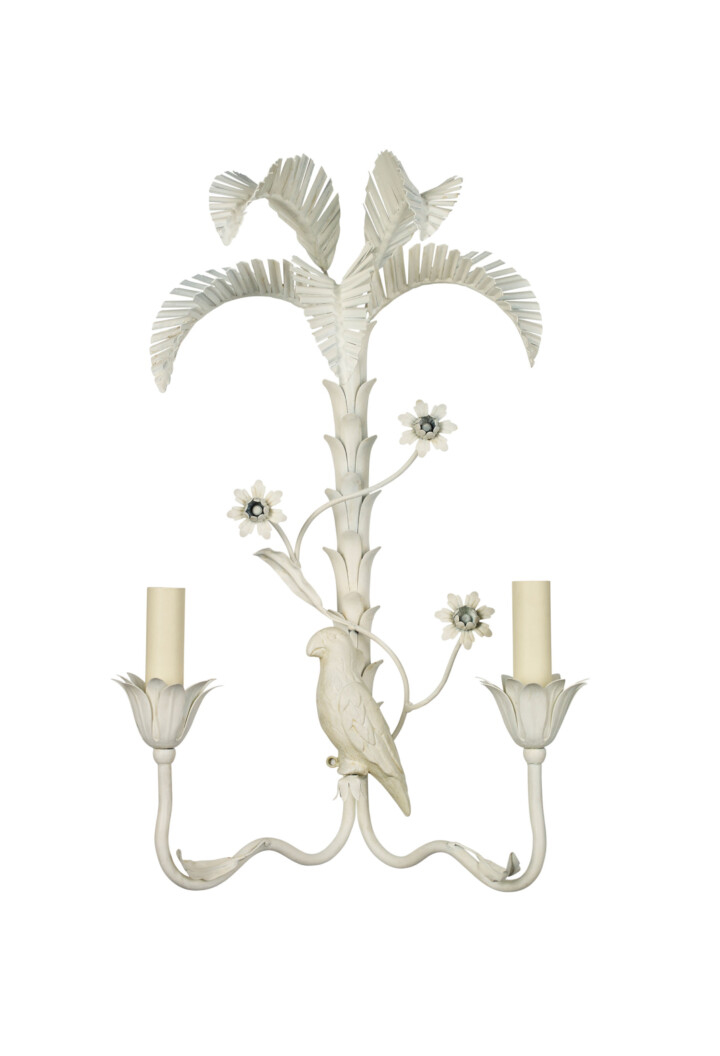 Palm Tree & Parrot Wall Light in Antique White (Right)