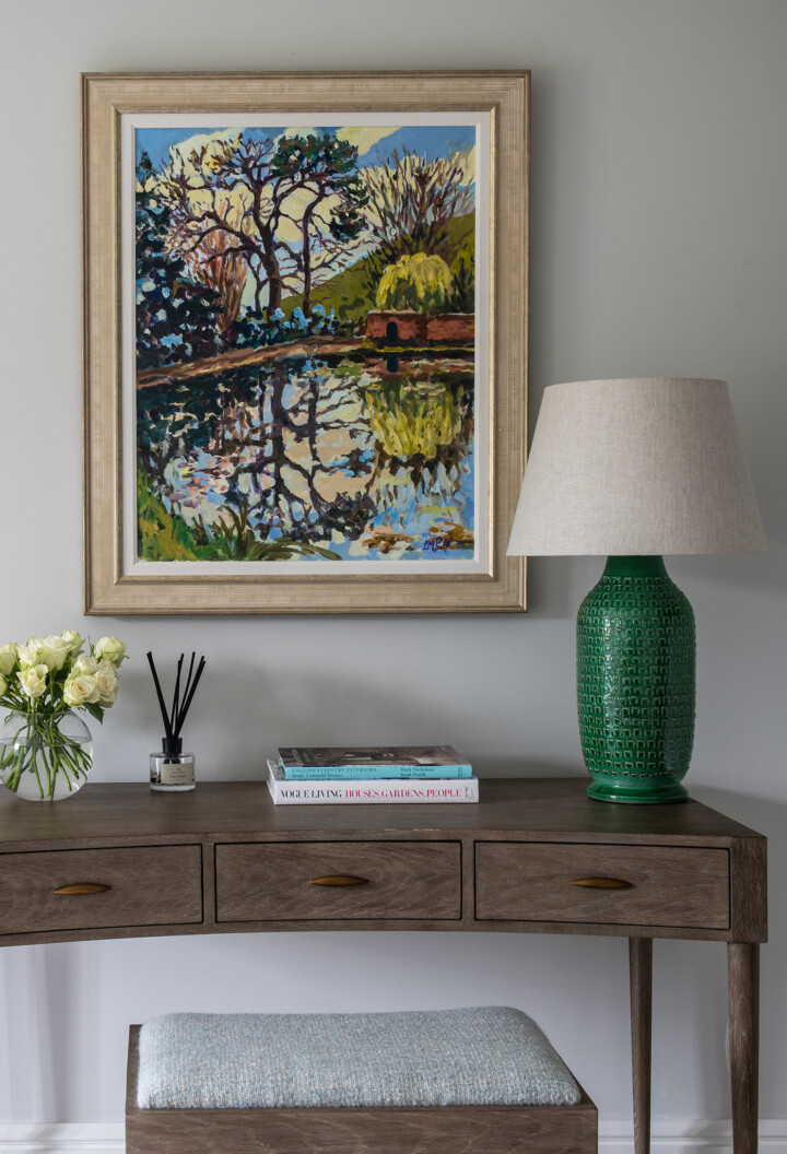 Quadri Table Lamp - Short in Green with silk shade. Interior designed by Sophie Head Interiors. Photography: Jody Stewart Photography